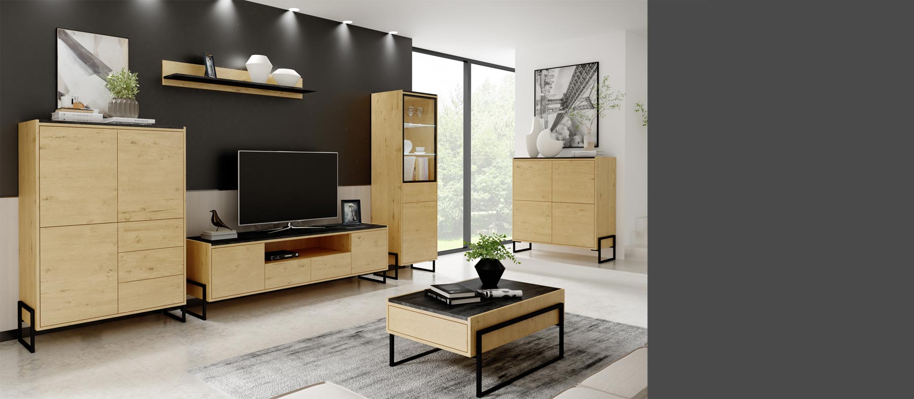 Zestaw mebli LUCCA to zestaw, który ozdobi Twoje pomieszczenie i sprawi, że salon stylowo odżyje. Industrialny styl idealnie sprawdzi się w każdej aranżacji. Jeśli szukasz prostych, ale jednocześnie świetnie wyglądających mebli, to taki zestaw z kolekcji LUCCA jest właśnie dla Ciebie.